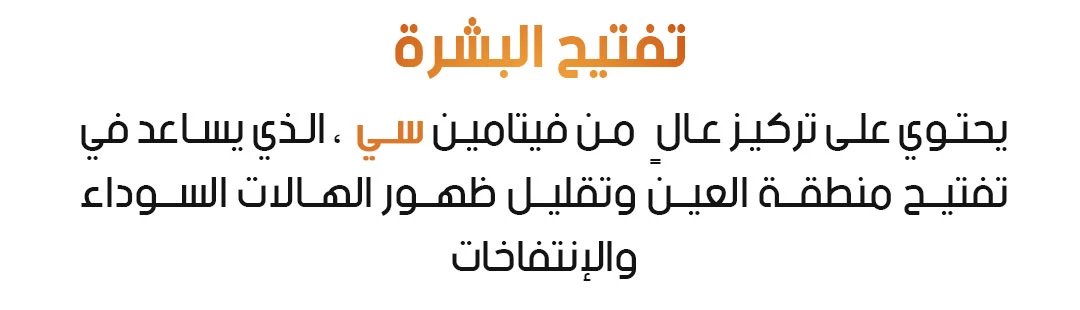 يعمل على إزالة الهالات السوداء بشكل فعال، مما يعطي عينيك مظهر أكثر إشراقاً.